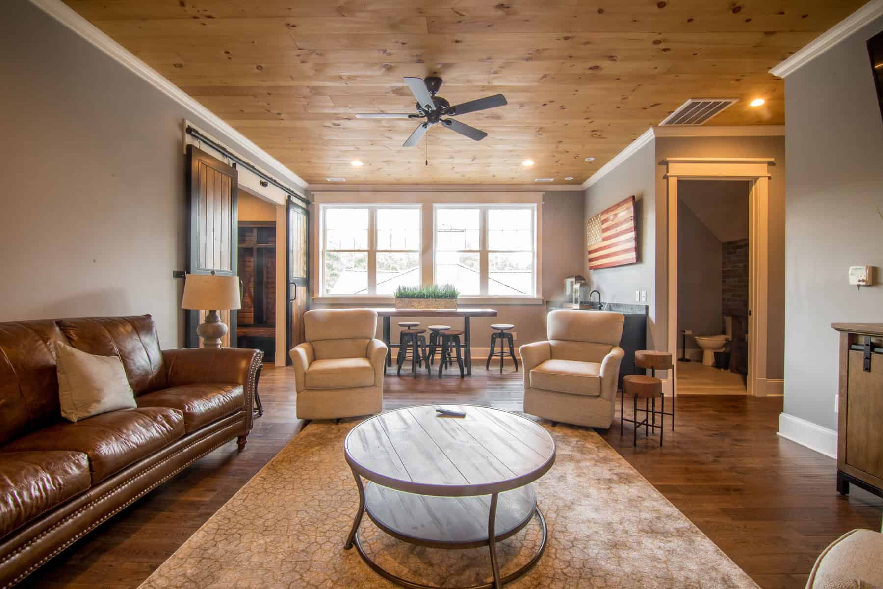 Couples often choose the main event space for its blend of country charm and modern comfort, creating a warm and welcoming atmosphere that suits both casual and formal celebrations. Whether you’re envisioning a rustic-chic affair with natural wood and greenery, a classic Southern celebration with timeless elegance, or a modern romantic look with soft draping and candlelight, the space can be customized to reflect your personal taste.